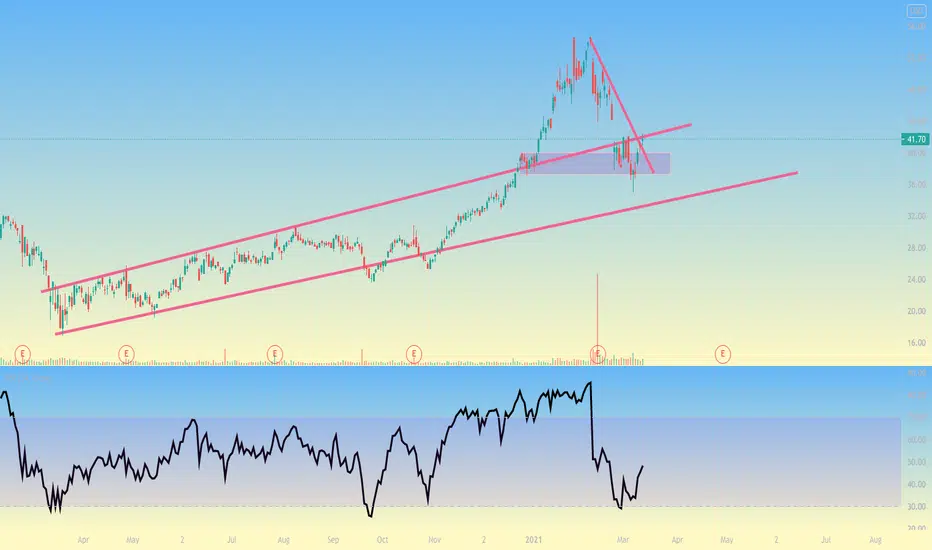had a nice breakout from its longterm trend channel but now its back under, look for the top trendline from 2020 to act as support and NOT resistance before entering! nice curling RSI too but the top trendline resistance is what worries me. im nuetral here