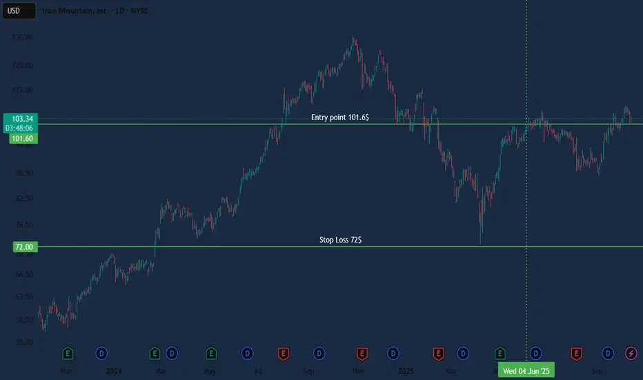 Entered a position in Iron Mountain (IRM) at $101.60, with a stop loss at $72 — where my long-term thesis breaks.