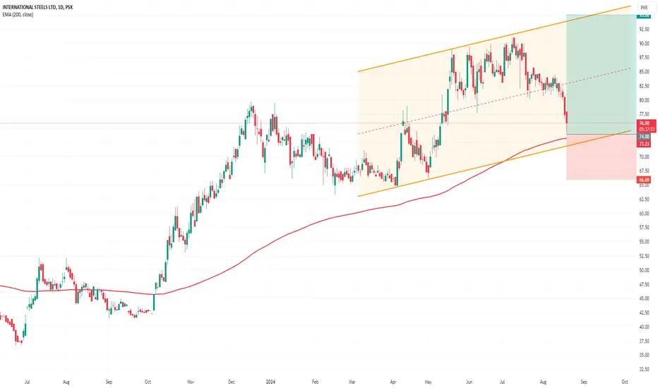 A stop loss should be placed at 66, marking a break below the channel. Please manage your trade accordingly.