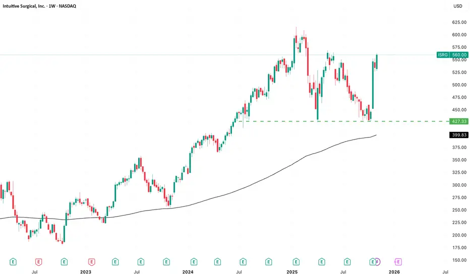 #ISRG #IntuitiveSurgical #MedTech #HealthcareStocks #RoboticSurgery #RelativeStrength #InstitutionalBuying #StockBreakout #TradingView #StockMarket #Medtech #DaVinci #HealthTech #MarketAnalysis #StockTrading