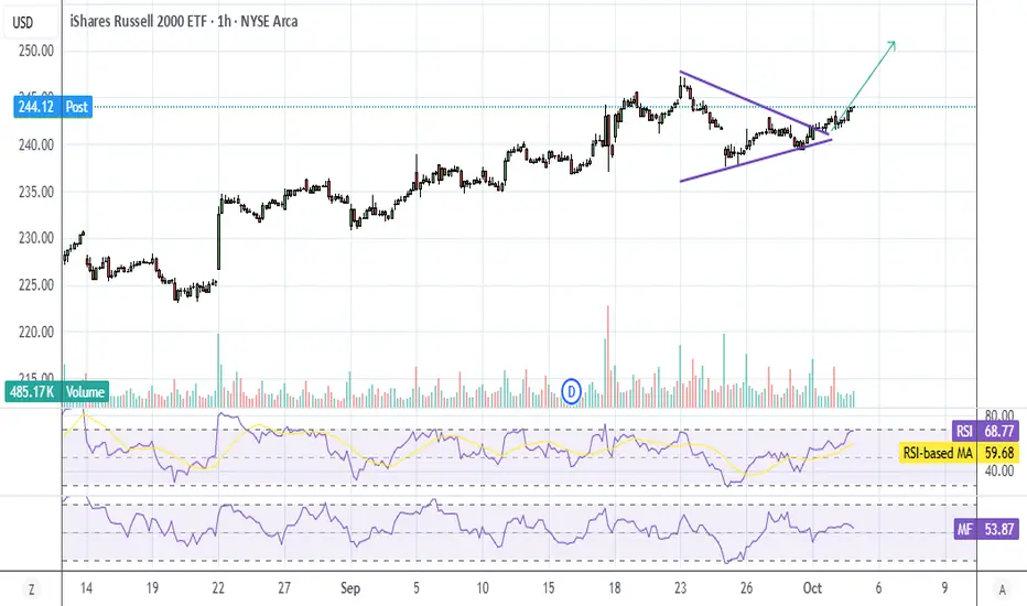 Looks like a pennant on the index fund, every time it does this it gets very pumptarded. Will post a RTY chart as well.