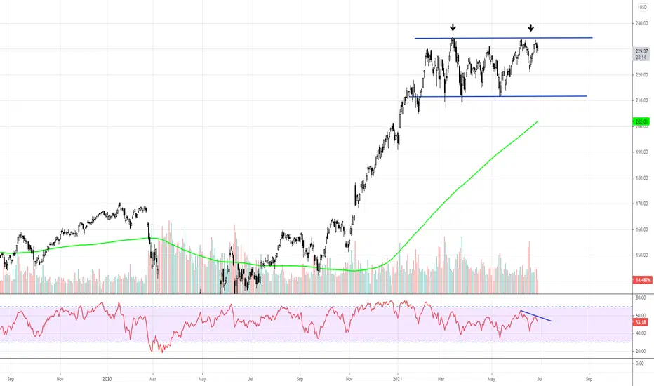 Third test of resistance and failure to rise to new highs on the Russel 2000.. Possible that we see a retest of the bottom of this channel..