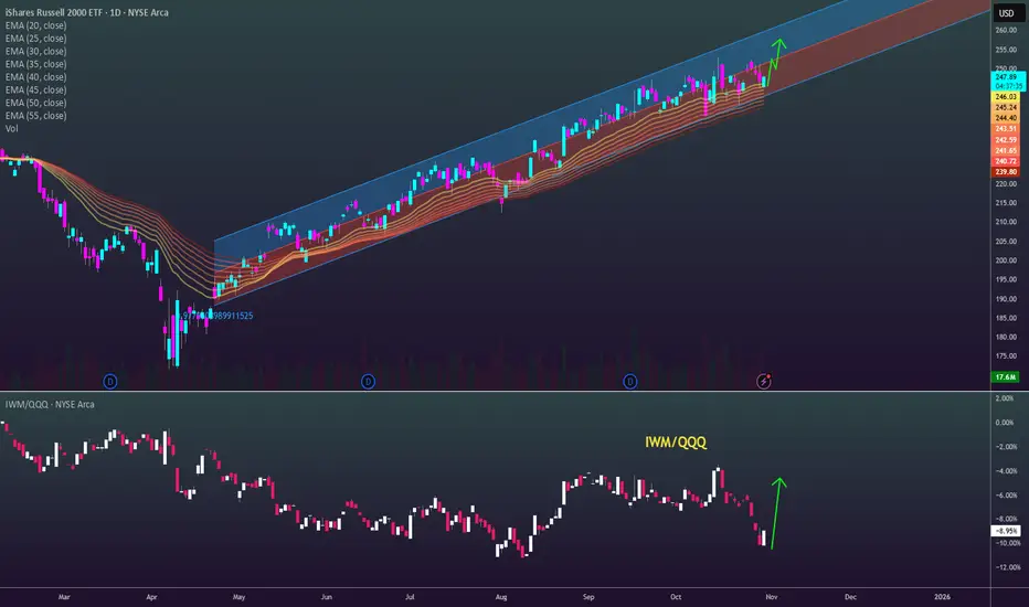 Small Caps have got a very simple regression channel that's near perfect. Keep it simple --- with the Nasdaq 100 taking off, the Russell 2000 is lagging but will get rotated into as the rate drop environment supports smaller companies the most.