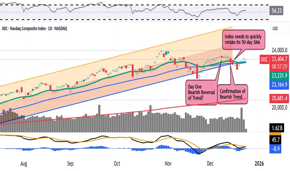 If you look at things in isolation, the Nasdaq Composite posted a Day One Bearish Reversal of Trend on Dec. 8, followed by a Day One Bearish Confirmation on Dec. 12 (having exhibited the necessary pause between the two). That's a bad technical sign.