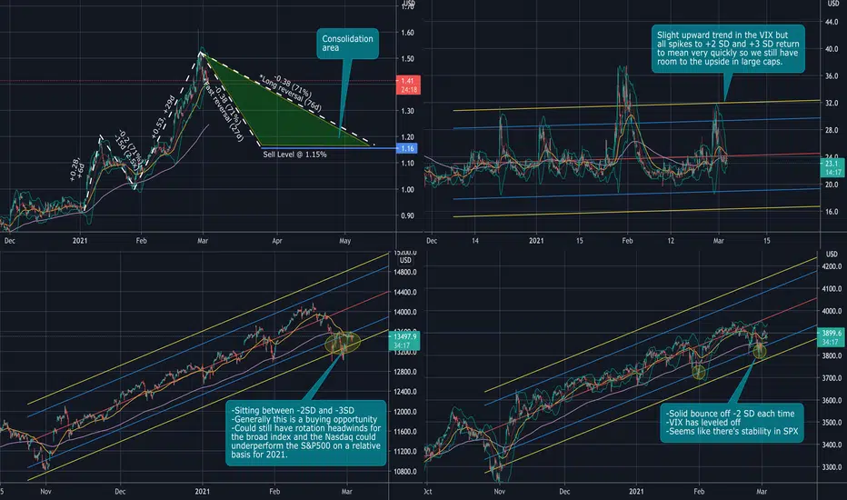 Interest rates are in consolidation mode for 1-2 months or so. Unless interest rates spike again I expect a continuation upward for the S&P500. The Nasdaq definitely has headwinds as a whole because of the huge run it had last year and it will likely be a stock-pickers market when it comes to technology-related areas.