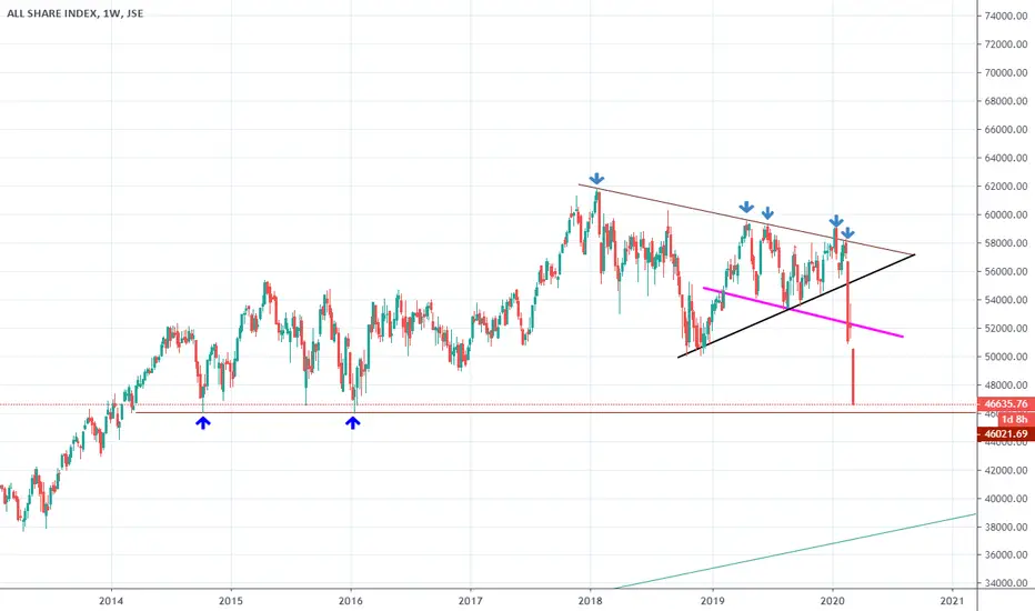 ALSI visited this 46 000 level in 2014 and 2016. The question now is whether we'll find some support on that level. 500 pts to go.