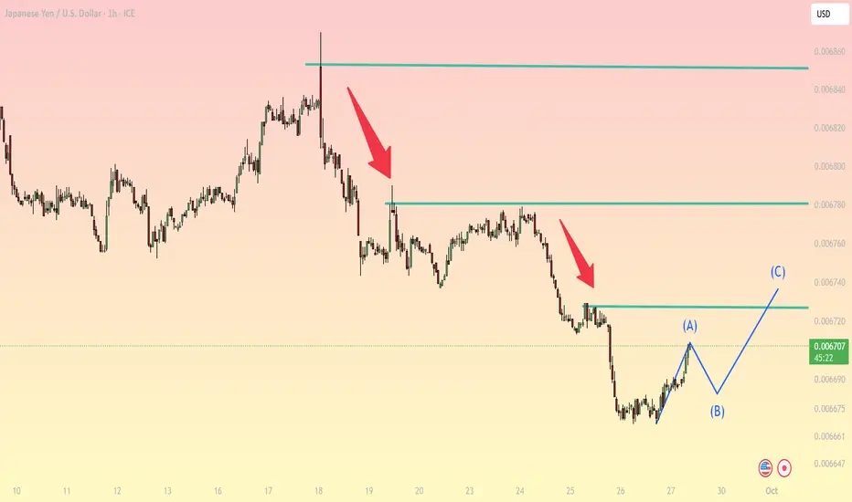 Near-term resistance: ~0.006720 (recent swing high, point A)