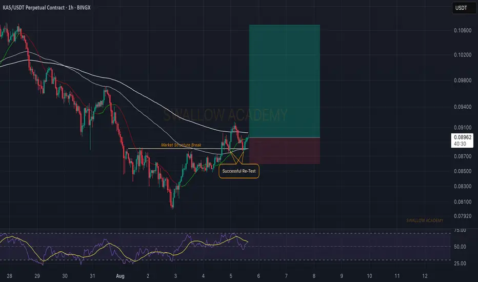 Kaspa looks good for the long haul here, with a 1:5 risk and reward ratio. There is nothing much to say, other than as long as we keep that current buy-side momentum, we are good for a long time here.