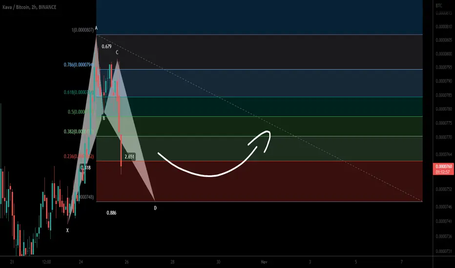 Now on a 2-hr time frame, KAVA is completing a bullish BAT pattern.