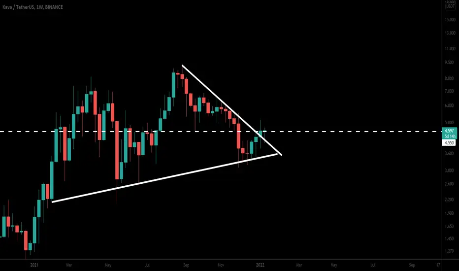 On a weekly time frame, KAVA has broken out a big symmetrical triangle and now re-testing the previous resistance as support. If we take a look at the stochastic then there is also a hidden bullish divergence, as the priceline is forming higher lows and the RSI is setting lower lows. Therefore, there is a very high probability for a big bullish move, and obviously, Kava 9 mainnet Upgrade event will be also supported for this move. By the way, this event is expected on 19 Jan 2022.