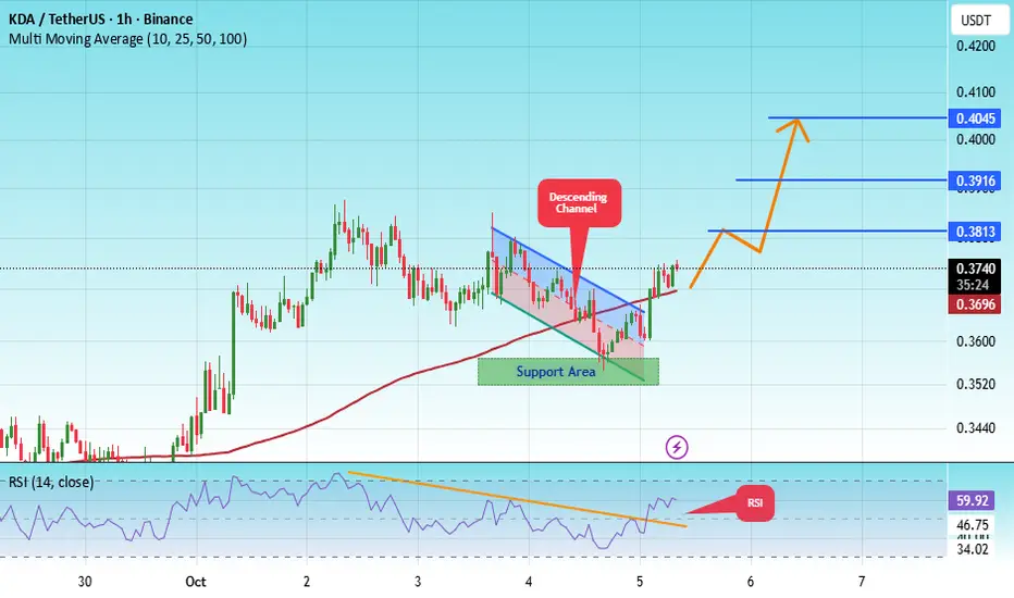 There is a major support area in green at 0.3540, which represents a strong support point.
