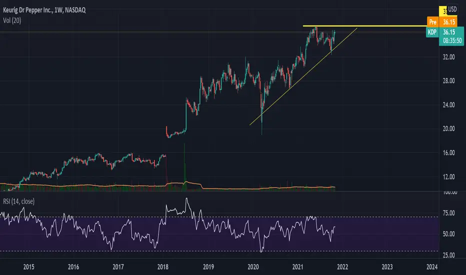 KDP is heading to all time high resistance, if the resistance is broken, then possible retest at $37 then it will go higher.