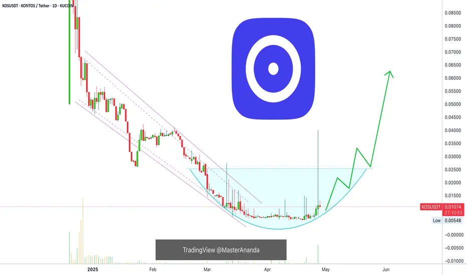 The project name is Kontos, yesterday it produced a candle of +430%. This is a bullish signal that affects the entire Cryptocurrency market, it is happening after this pair produced a new All-Time Low. This signal reveals how strongly the market will grow when it starts to move in full force.