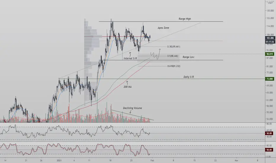 Today’s analysis- KSMUSDT, trading in a valid apex where a breakout is imminent,