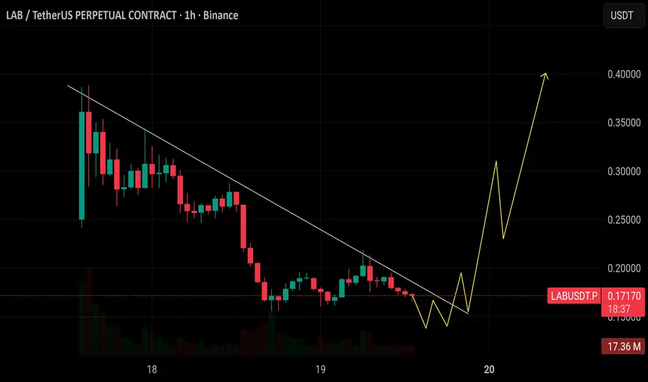 LLAB/USDT has been consolidating under a strong descending trendline, showing signs of exhaustion in selling pressure. The structure suggests that a breakout is brewing if price breaks and holds above this trendline, it could trigger a strong bullish move toward the $0.35–$0.40 range. Buyers seem to be accumulating quietly, and a breakout retest could confirm the shift in momentum.