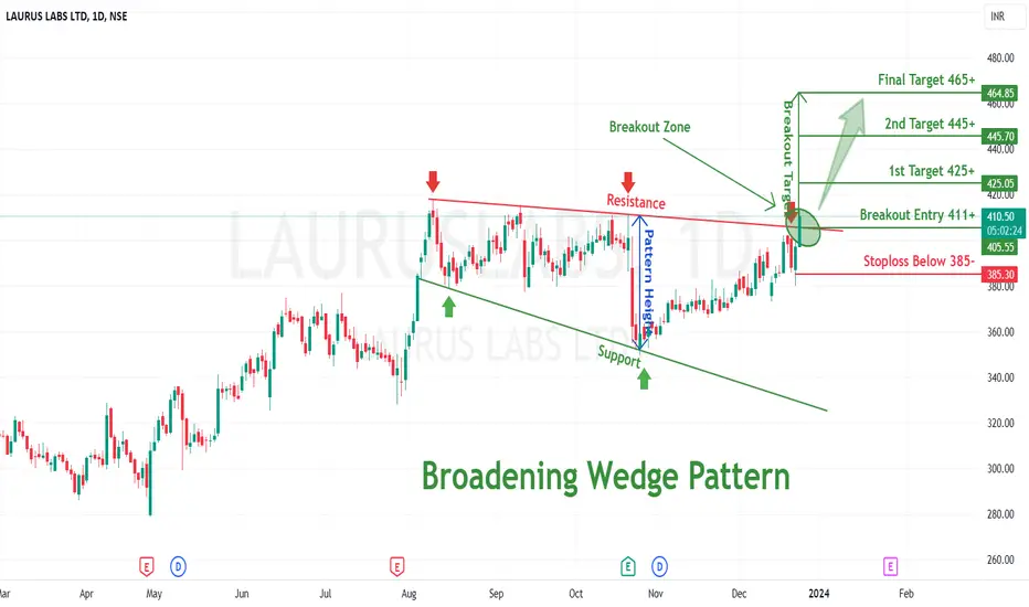 ✅On 1Day Time Frame Stock Showing Breakout of Broadening Wedge Pattern.