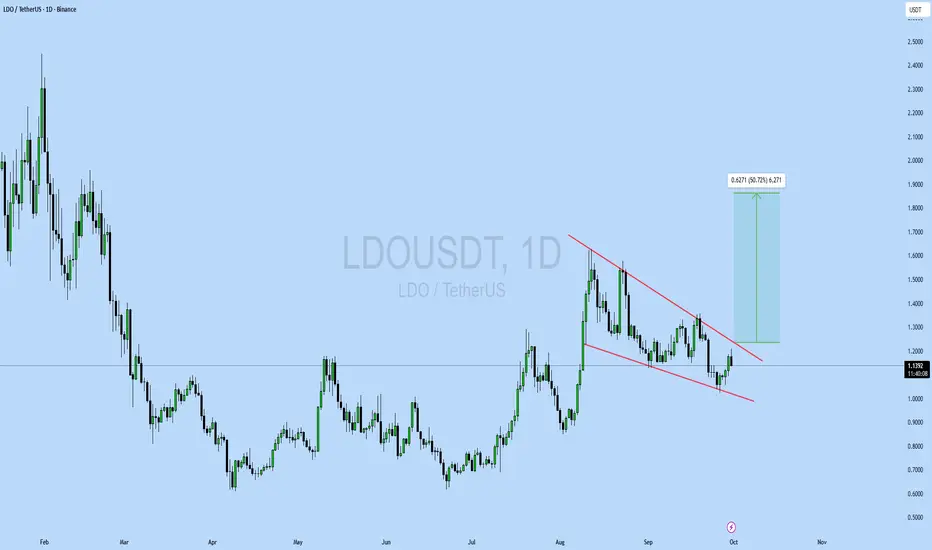 LDO is breaking out of a falling wedge on the 1D timeframe, signaling a bullish reversal with upside potential toward $1.76. Momentum favors continuation if buyers sustain pressure. Always use proper risk management.