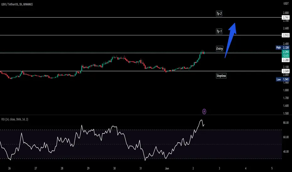 LDOUSDT IS potentially bullish. There is no divergence shown in RSI hopefully trend is going in the same direction