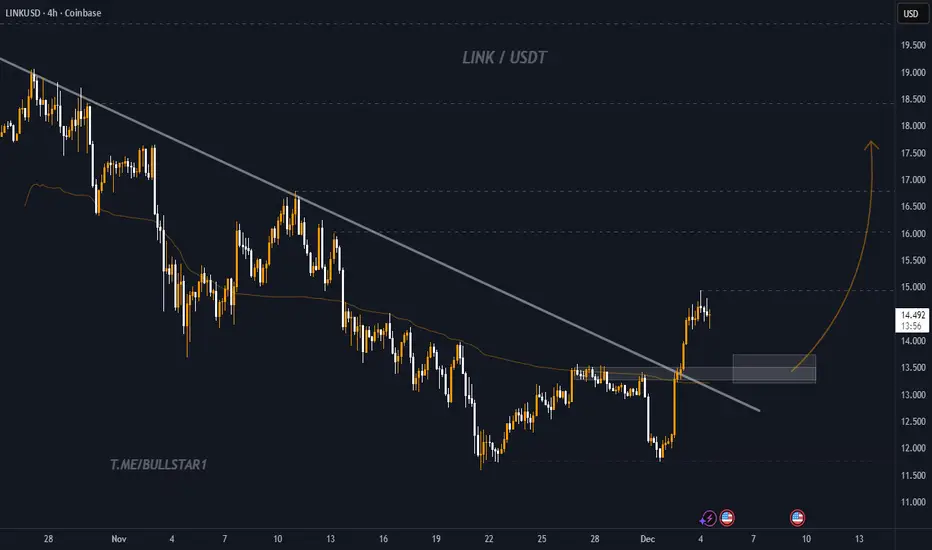 Price made a strong breakout and is now pulling back toward the retest zone around the previous trendline. If this area holds as support, LINK may continue its upward move toward higher targets. Structure looks clean and bullish as long as the retest confirms support.