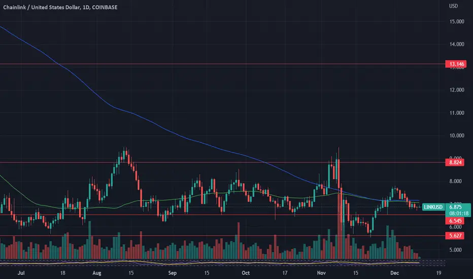 LINK started the previous week around level of $7.5 and moved to the downside, to the lowest weekly level at $6.7. RSI was pushed from the level of 56 down to 46, indicating that the market is probably still not over with selling orders. Moving averages of 50 and 200 days continue to move as two parallel lines with very tight distance between them, which increases probability of potential cross in the near future.