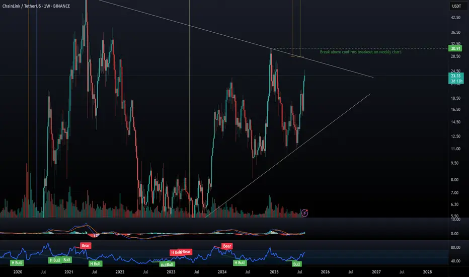 A huge bullflag pattern has formed on the weekly chart, if this breaks to the upside we could be looking a face melting targets, with the most bullish targets exceeding $1000.