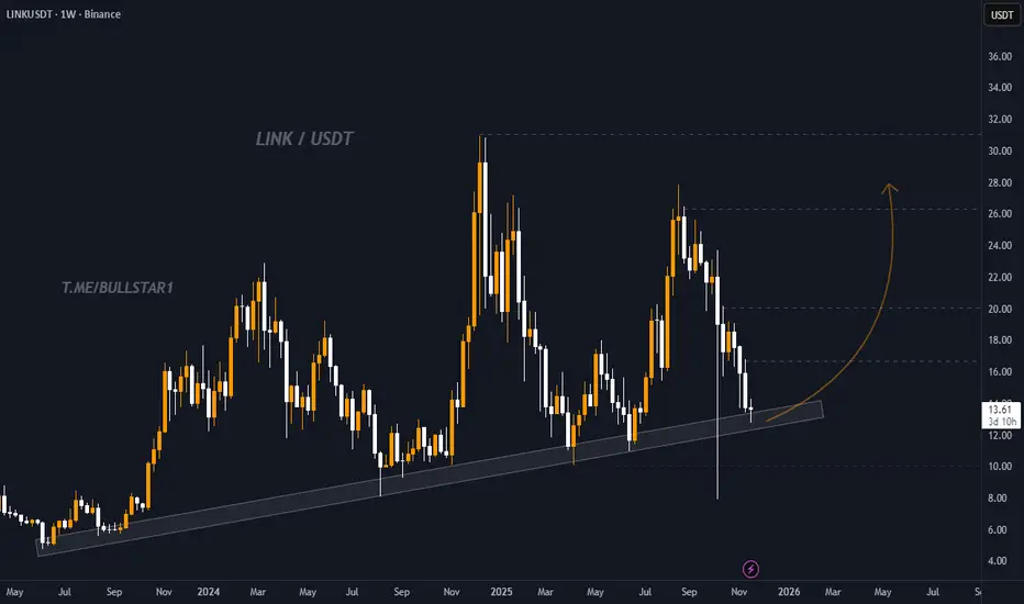 Price has once again returned to this key level around the 13 zone, showing early signs of stabilization. As long as the weekly structure holds above the trendline, LINK maintains a bullish macro outlook.