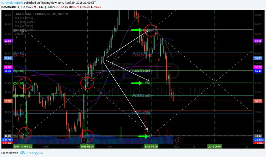 LITE targets 64.95 April 6 with MACD turned down" and ... yes it hit that target near perfect.