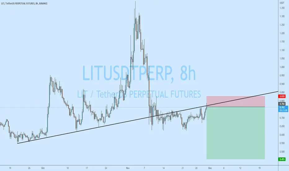 LITUSDT has broken below the trendline, showing further potential weakness. As long as price below the trendline, we expect over 40% drop in price.