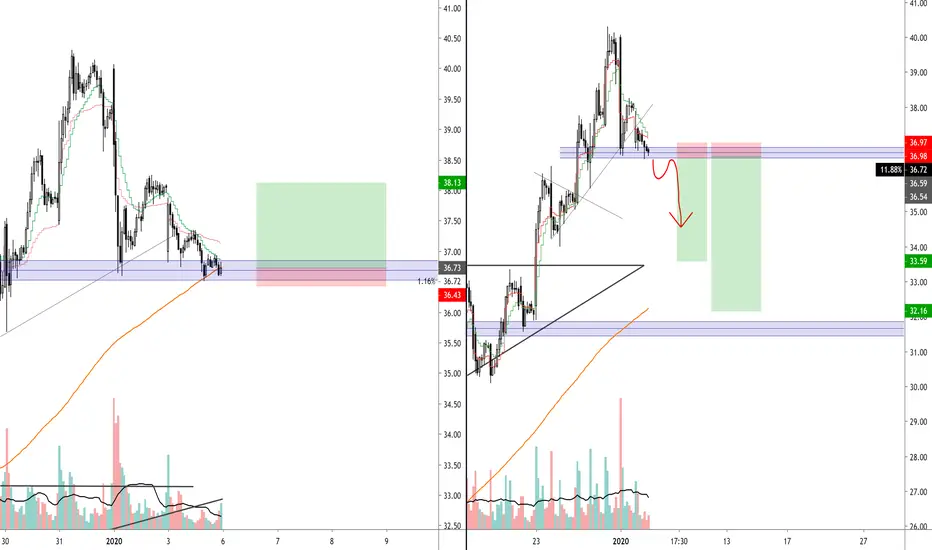 Holding for it's life at fresh demand. Bullish if we manage to hold low 37 demand (calls here are risky, but good RR). If we breakdown, short the retest to low 32 (swing)