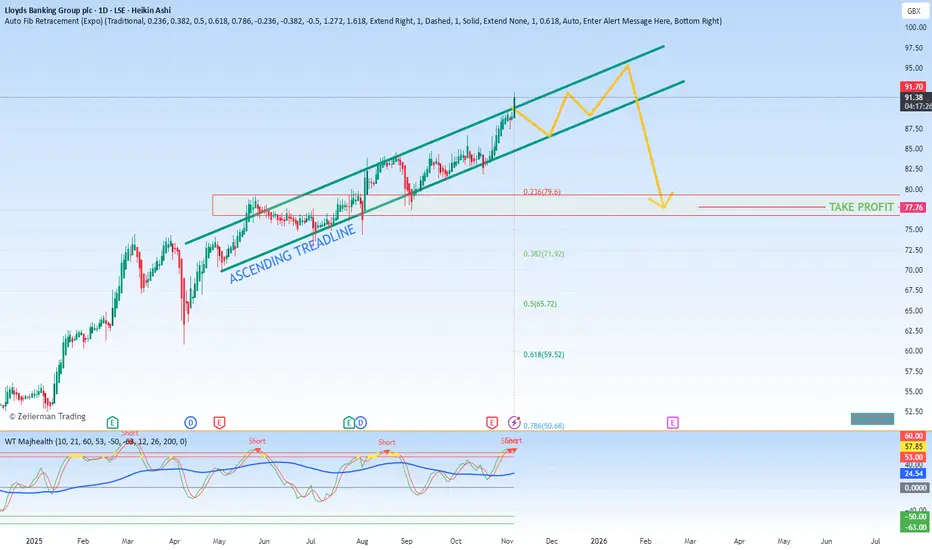 LLOY) on May 2nd, 2025, the stock is exhibiting a well-defined bullish structure known as an ascending channel. This pattern is characterized by a series of higher highs and higher lows, contained within two upward-sloping parallel trendlines.