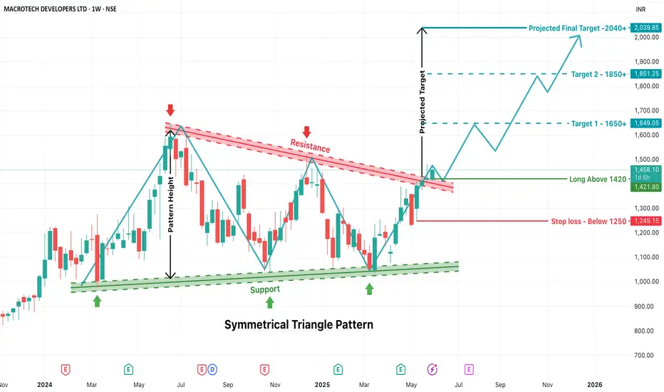 Once price sustains above ₹1420, the stock is expected to follow a bullish trajectory toward ₹1650–2040+ over the coming weeks/months.