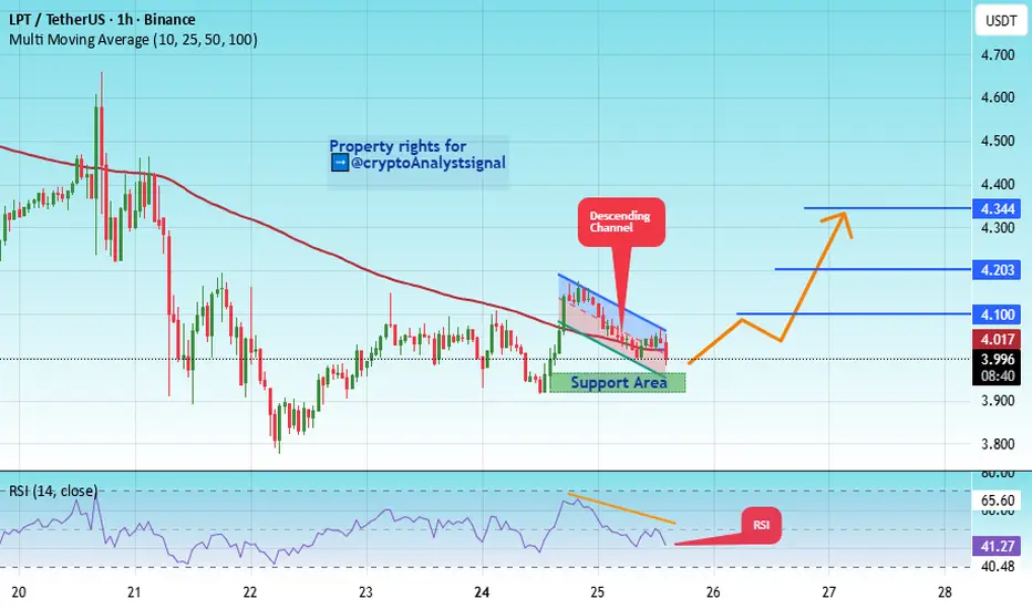 There is a key support zone in green at the price of 3.94, representing a strong support point.