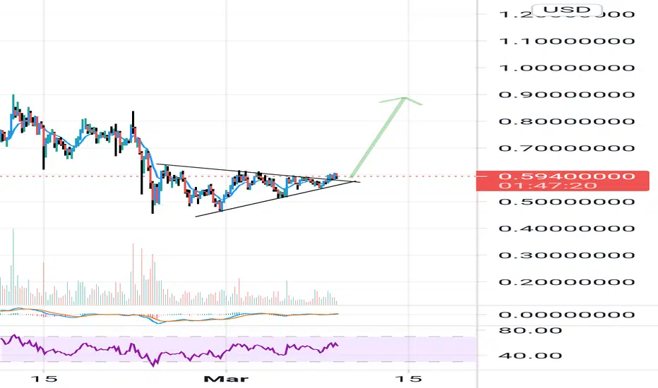 Broke out of the consolidation in the sym triangle and retested it a couple hours ago