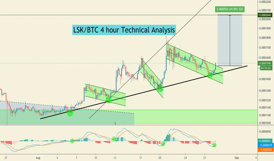 LSK/BTC bounced right back off the strong long term support and currently forming a bULL FLAG.