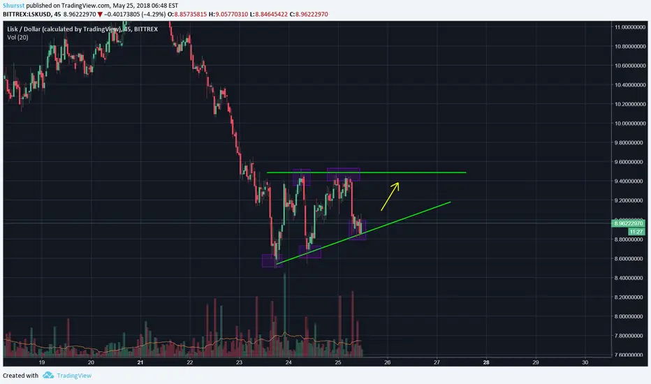 Lisk has formed a bullish pattern: Ascending Triangle. Ususally these patterns breakout on the 5th touch (purple rectangles).