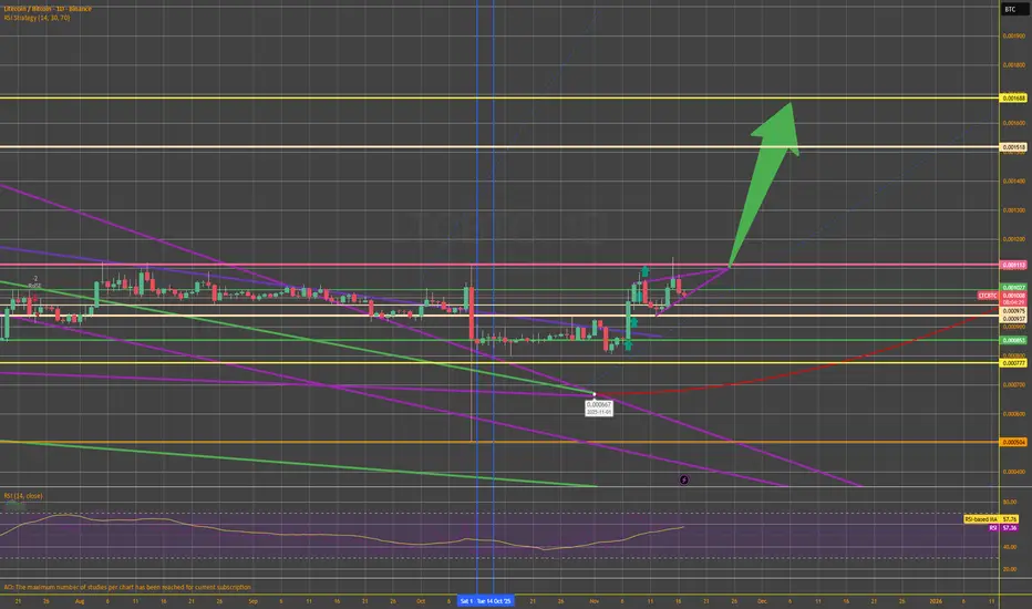 Litecoin could see a potential breakout on the LTC/BTC chart within a week to 25/11/2025 the latest, if it stay's above the 0.001 range;