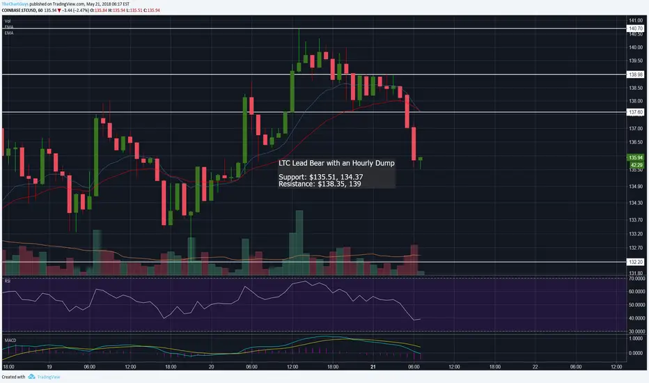 BTC and ETH still barely holding hourly supports, but LTC dumped well below them.