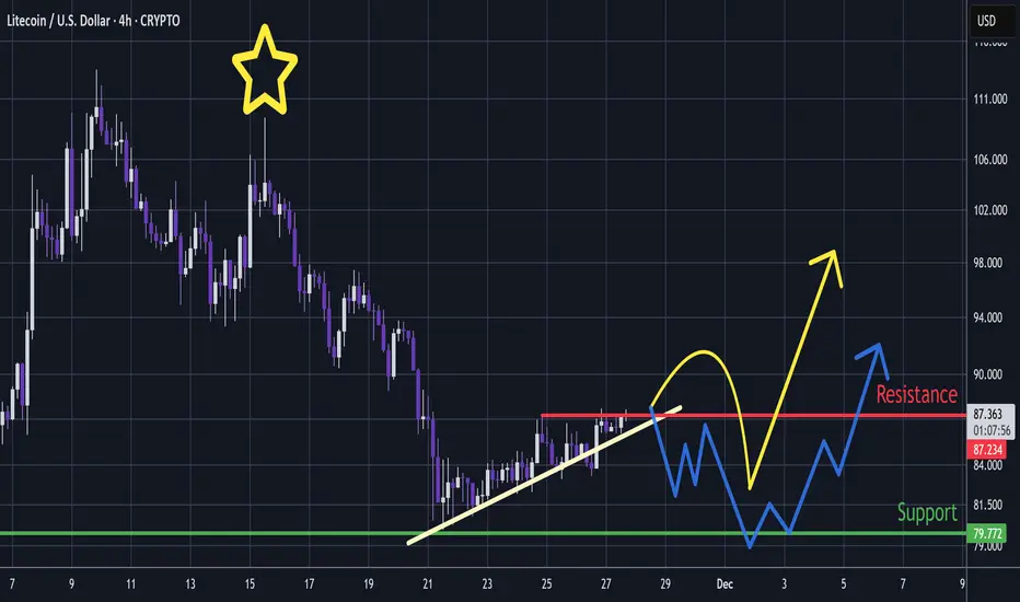 I also notice that LTC didn't quite reach the support @ $79.8 which is a significant liquidity juncture that the bots may like to reach (blue path).