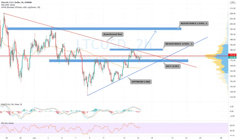 LTCUSD rebounded from uptrend line and key level around 172