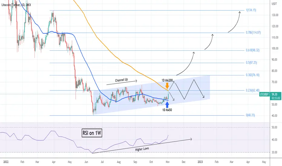 The idea is on the 1D time-frame where LTC hit today its 1D MA200 (orange trend-line) for the first time since December 05 2021! It is easy to realize that closing above such a long-term Resistance will be a major bullish break-out.