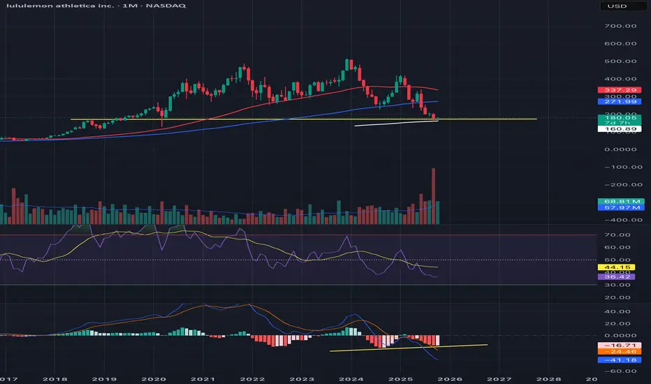 Lululemon (LULU) has seen substantial downside over the past several months, declining nearly 58% since early February. Despite the steep correction, multiple technical and fundamental indicators suggest the stock may be approaching a major inflection point.