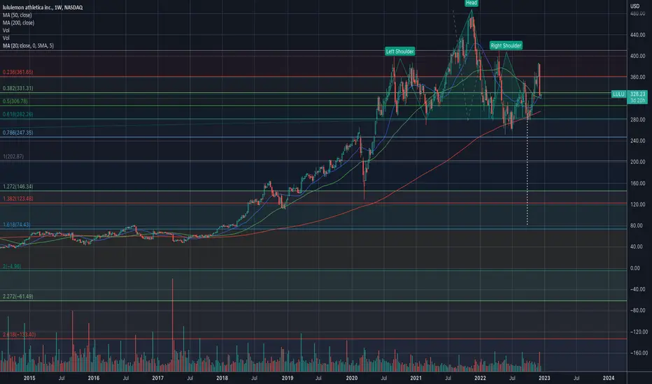 Lulu looks like it's still playing out H&S with the neck line at $282.