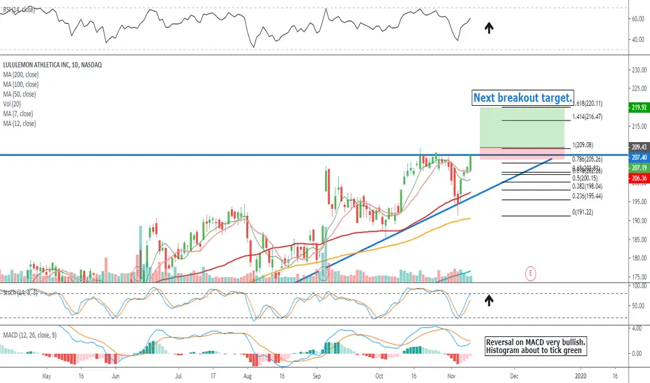 Looks like LULU is ready to take the next step higher after consolidating through Sept and Oct.