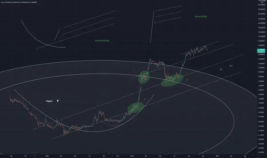 LUNA is sitting above the 4.618 Fib level, with this large bullflag structure, encompassing the whole price history