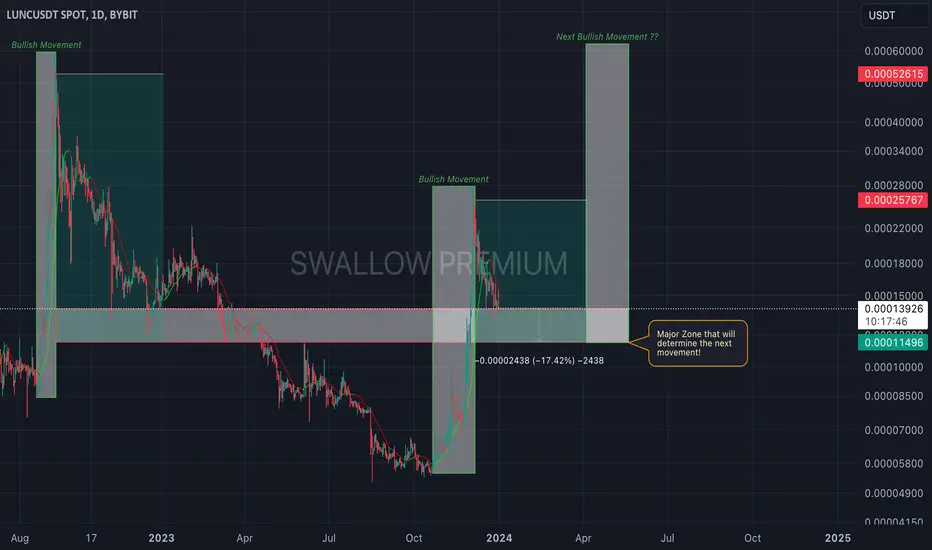 LUNC has had multiple bullish momentums recently and has definitely been a very volatile coin. As of now, after that bullish movement, the price has been in a downward movement where it is touching that major zone that we highlighted. This zone will determine the next movement for the coin so got to pay attention to this zone for sure!!