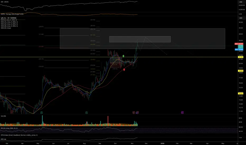 Price has held the mid-term support zone highlighted in the September update and is now entering a key resistance area at 25–27, where selling pressure could begin to dominate.