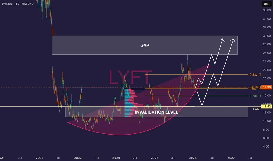LYFT) has confirmed a definitive Trend Reversal and is currently presenting a textbook bullish setup with a high-probability confluence zone. The 2026 sector recovery is playing right into our hands here.