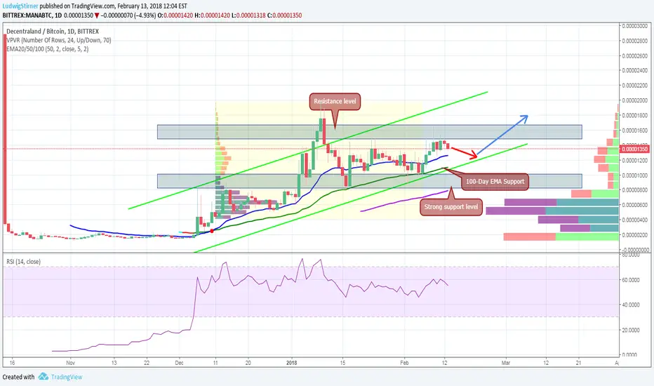 MANA finds support. After a correction that has lasted for just over a week, MANA token has found support at their 50 day EMA, which has been a reasonably strong support since the beginning of December. That said, one key factor that traders should bear in mind is that residents of the Decentraland are actively preparing for the opening of the platform and hiring designers to embody their most interesting fantasies. As things stand, the token looks set to continue its uptrend over the coming weeks.