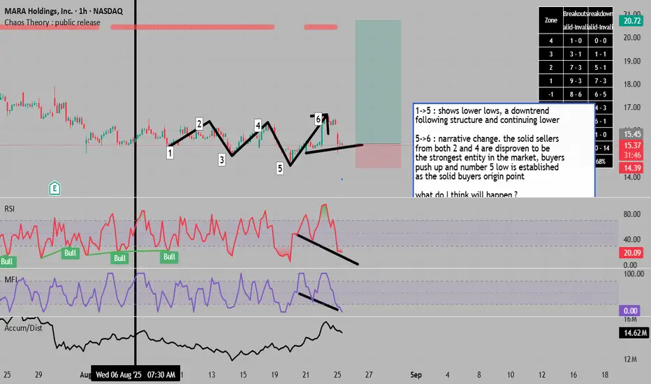 - **Bullish divergence** on RSI (currently 36.76) and MFI - price making lower lows while momentum indicators show higher lows