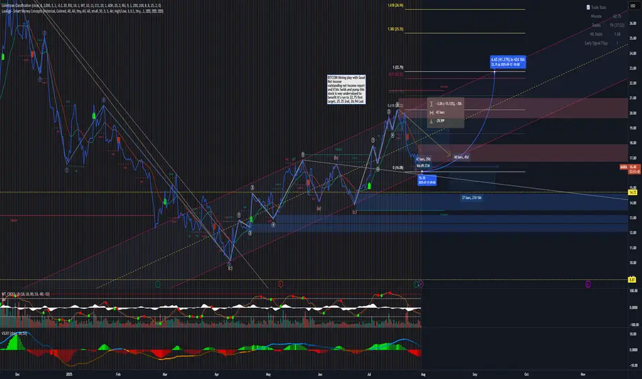 With recent outstanding earning report MARA is a undervalue bitcoin mining play offering better risk and Elliott wave count on wave 4 completion looking for wave 5 push up. anytime to see a green reversal day and further movements above the current redline, the hold can last over 1 to 2 weeks. the upmove can last over 27 days. looking over the trendwave. so it's better to seek 60 days options contract
